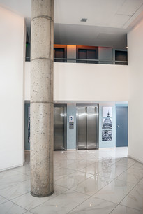 La estética como se anticipo, acompaña la propuesta de la obra en el Hall de entrada.